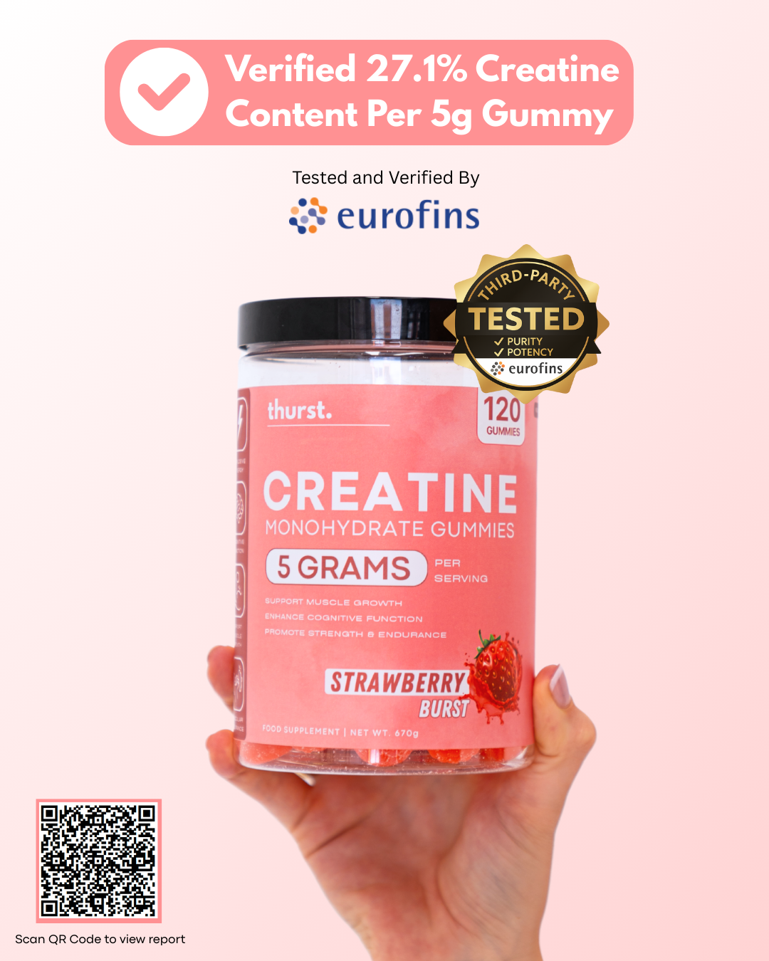 Your Guarantee of Quality with Thurst® Creatine Gummies. Backed by Science & Verified by Eurofins 3rd Party Lab Testing.
